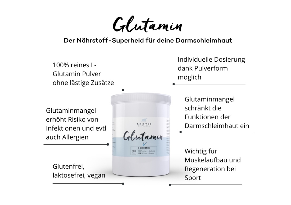 1x L-Glutamin (500g): Wichtige Aminosäure zur Reparatur der Darmschleimhaut und Stärkung der Barrierefunktion (Leaky Gut hier bitte weglassen).